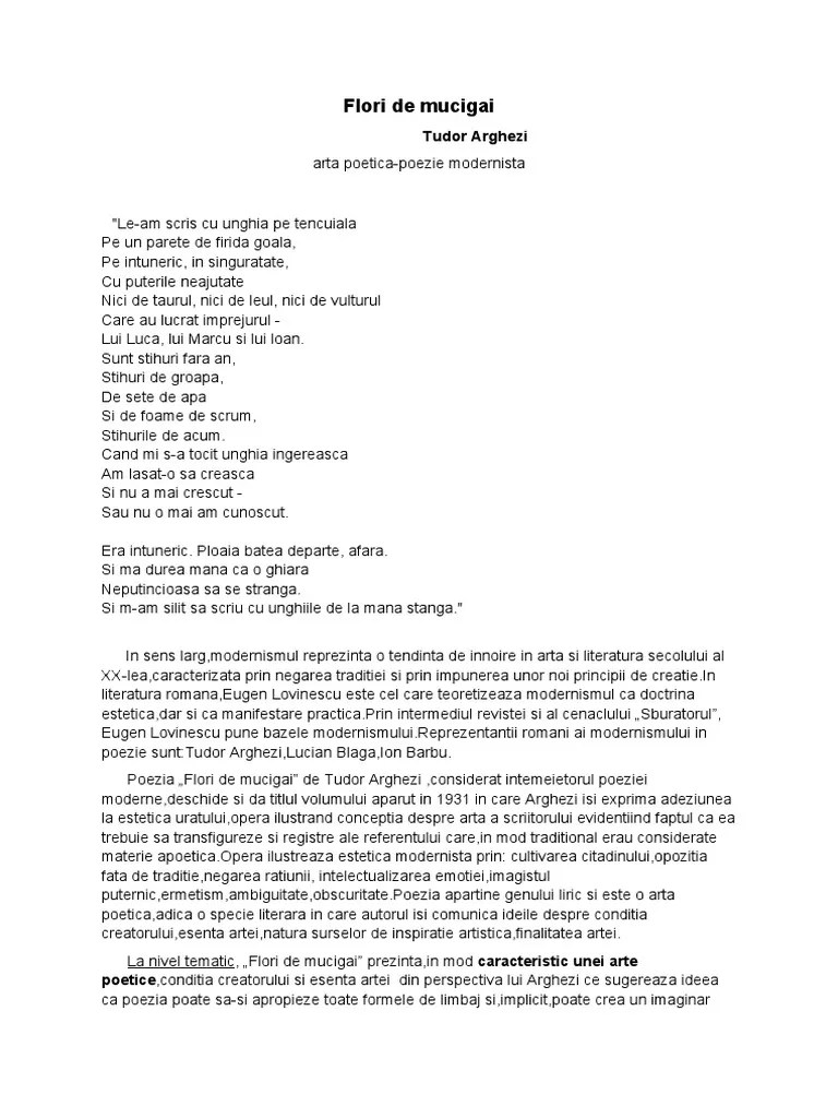 Start studying flori de mucigai de tudor arghezi. Learn vocabulary, terms, and more with flashcards, games, and other study tools. Flori de mucigai de tudor arghezi (autor canonic) arta poetica moderna. Pe un parete de firida goala, Read flori de mucigai de tudor arghezi from the story materia română (b) by vanessablack17 (vanessa black) with 269 reads.